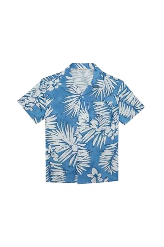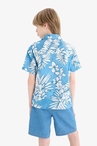 DeFacto - ديفاكتو قميص كاجوال منسوج باكمام قصيرة ورقبة ريزورت بمقاس كبير للاولاد E2905A8، ازرق لعمر 8/9 سنوات
