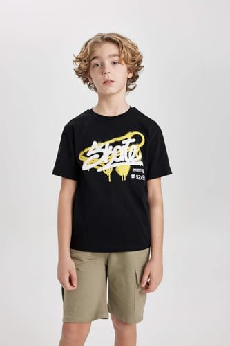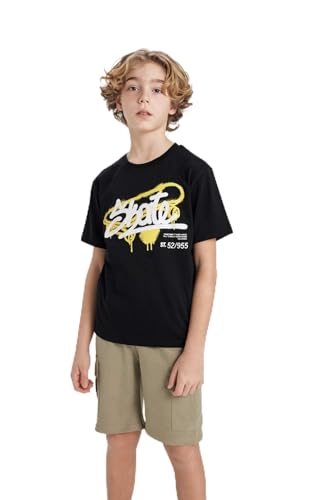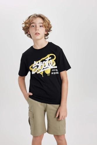 DeFacto - تي شرت بأكمام قصيرة ورقبة دائرية ضيقة وقصة عادية للأولاد C3300A8 من ديفاكتو