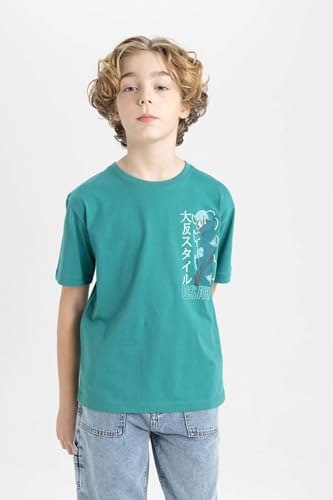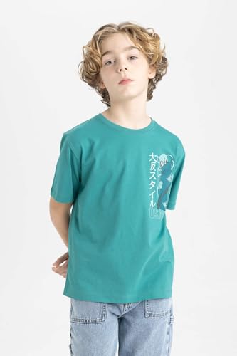 DeFacto - تيشرت من قماش منسوج بقصة عادية ورقبة دائرية ضيقة وكم قصير للأولاد من ديفاكتو، C3347A8