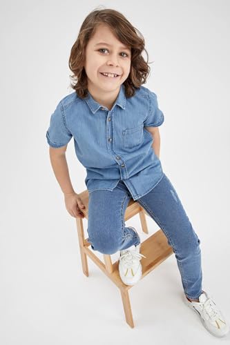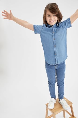 DeFacto - ديفاكتو قميص بقصة عادية ورقبة دائرية ضيقة واكمام قصيرة للاولاد، ازرق فاتح، 8/9 سنوات