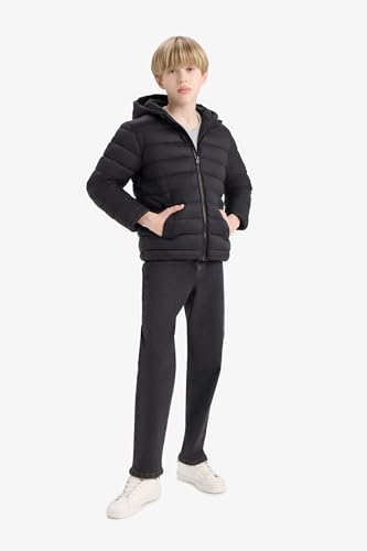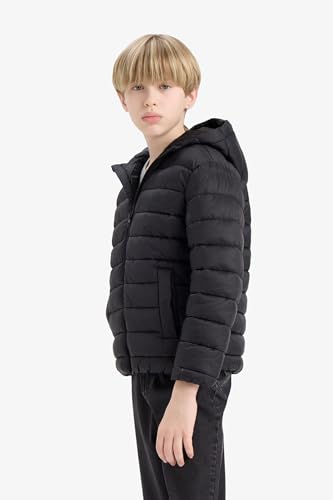 DeFacto - ديفاكتو ملابس خارجية بغطاء للرأس واكمام طويلة وقصة عادية للاولاد من مونت E8688A8، لون اسود لعمر 11/12 سنة