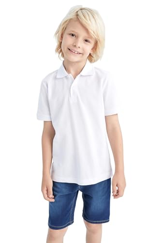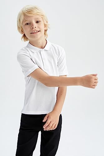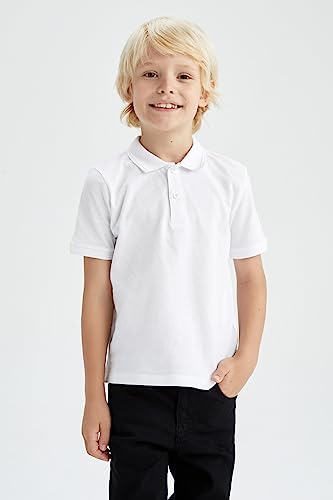 DeFacto - تيشرت بولو للأولاد من ديفاكتو، تيشرت بقصة عادية وأكمام قصيرة وياقة بولو، لون أبيض، مقاس مناسب لعمر 4-5 سنوات، موديل K1689A6