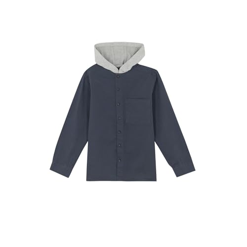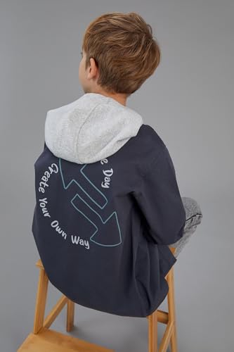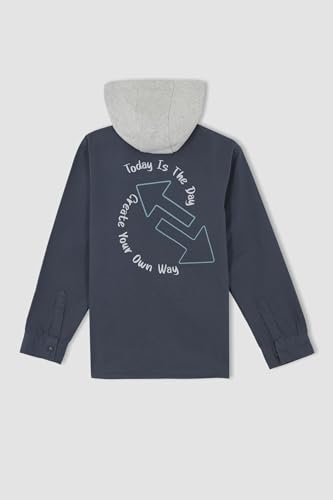DeFacto - ديفاكتو قميص باكمام طويلة وغطاء للراس وقصة مريحة للاولاد، رصاصي 12/13 سنة