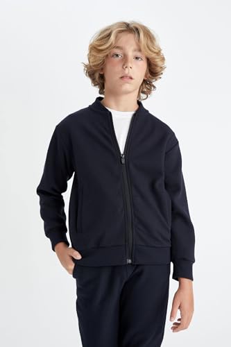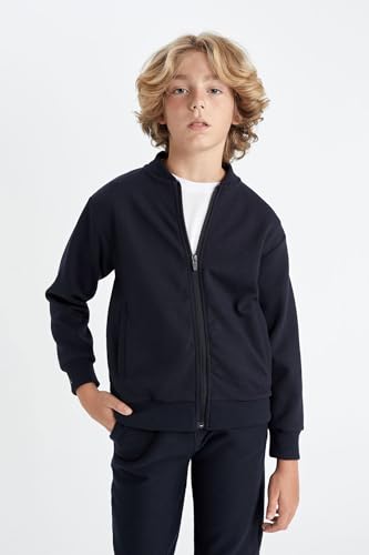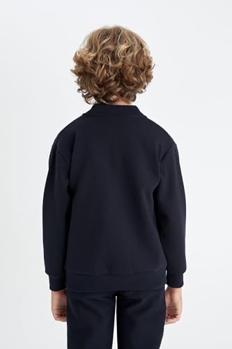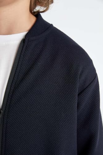 DeFacto - كارديجان من دي فاكتو بياقة ريبد للرجال، تصميم عادي وأكمام طويلة، مصنوع من القطن والبوليستر والإيلاستين، لون أزرق