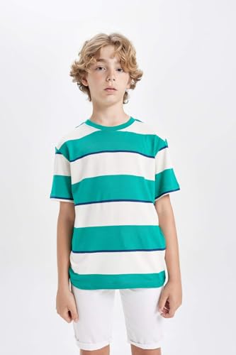 DeFacto - تيشرت منسوج للأولاد من ديفاكتو بقصة عادية ورقبة دائرية ضيقة وأكمام قصيرة، موديل B5931A8