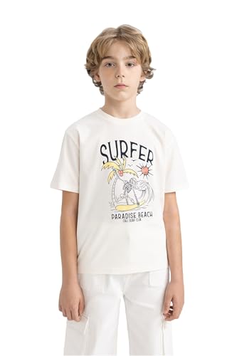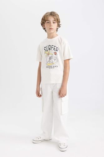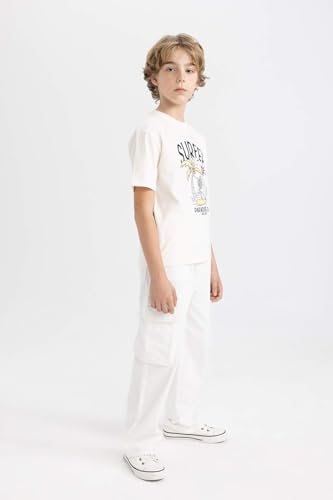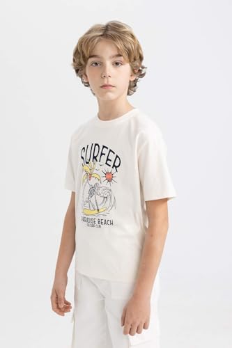 DeFacto - تيشرت أولادي منسوج برقبة دائرية ضيقة وأكمام قصيرة وقصة عادية من ديفاكتو كم قصير موديل D0439A8