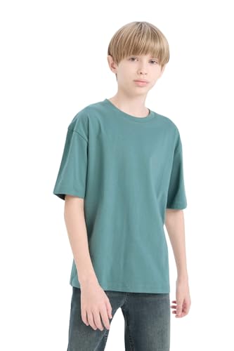 DeFacto - تيشرت كاجوال منسوج بأكمام قصيرة ورقبة دائرية ضيقة وقصة كبيرة للأولاد من ديفاكتو B5927A8