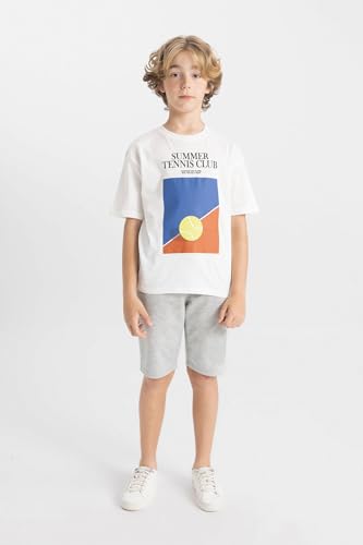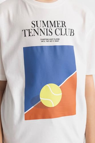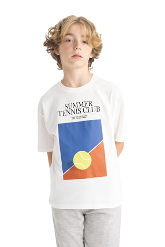 DeFacto - تيشرت منسوج بأكمام قصيرة ورقبة دائرية ضيقة بمقاس كبير للأولاد من ديفاكتو، C4901A8