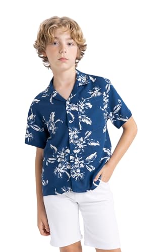 DeFacto - قميص للأولاد من ديفاكتو بأكمام قصيرة وياقة ريزورت ومقاس كبير، C2876A8