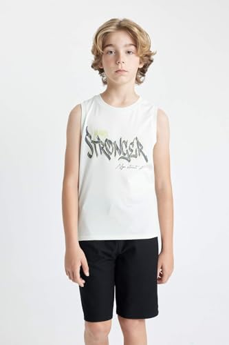 DeFacto - تيشرت رياضي غير منسوج بقصة عادية ورقبة دائرية ضيقة للأولاد من ديفاكتو، D0777A8