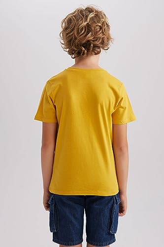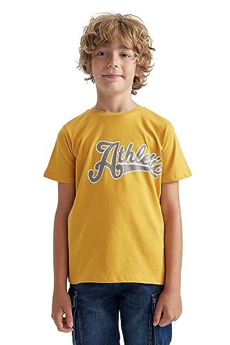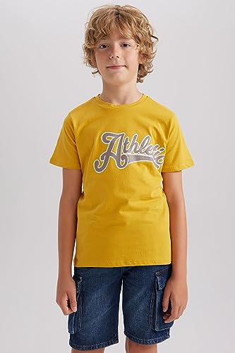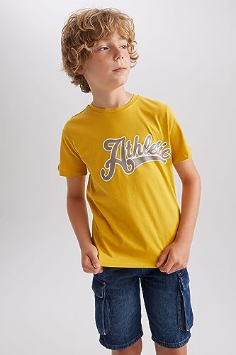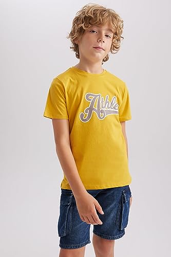 DeFacto - تيشرت من قماش مطبوع بقصة عادية ورقبة دائرية ضيقة وكم قصير للرجال ديفاكتو