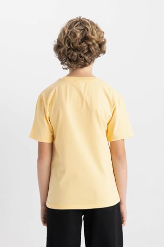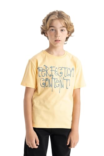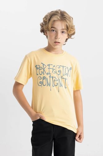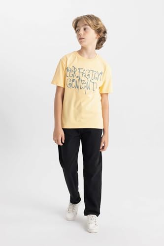 DeFacto - تيشرت منسوج بأكمام قصيرة ورقبة دائرية ضيقة وقصة عادية للأولاد C4652A8 من ديفاكتو