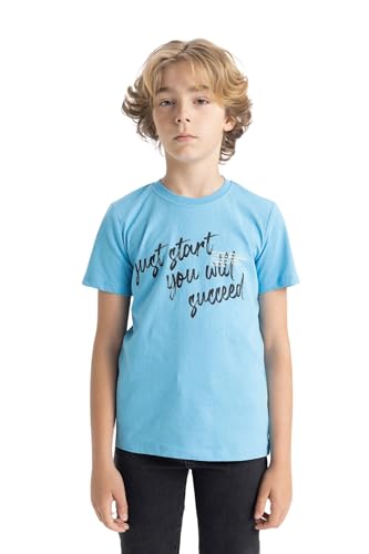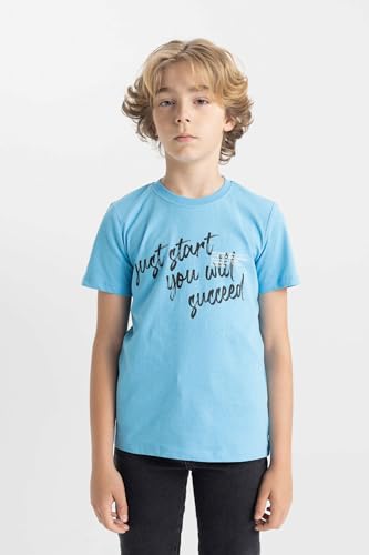DeFacto - تيشرت منسوج بأكمام قصيرة ورقبة دائرية ضيقة وقصة عادية للأولاد من ديفاكتو، موديل C6886A8