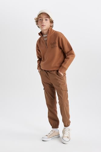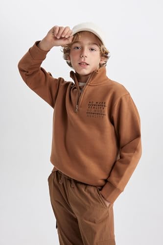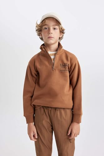 DeFacto - قميص بتصميم عصري منسوج بقصة عادية ونصف سوستة وأكمام طويلة للأولاد من ديفاكتو، موديل B2961A8