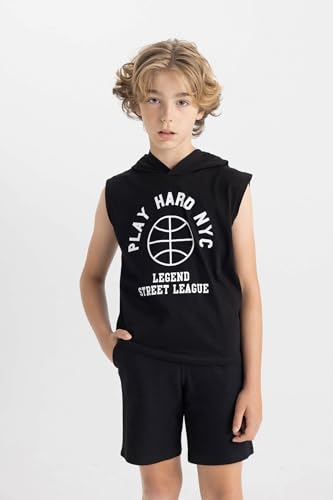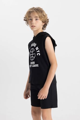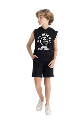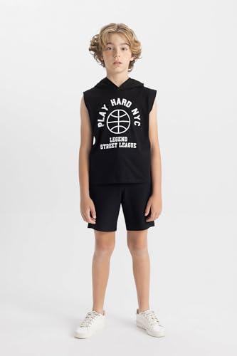 DeFacto - طقم منسوج بقصة عادية ورقبة دائرية وأكمام قصيرة بنمط كرة السلة للأولاد من ديفاكتو، موديل C7040A8