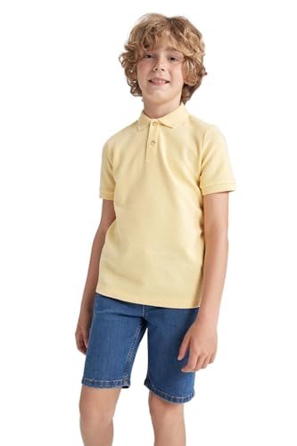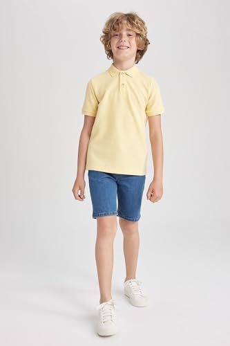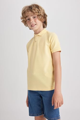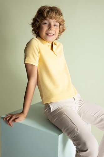DeFacto - تيشرت بقصة عادية ورقبة بولو وكم قصير منسوج للأولاد من ديفاكتو، قميص Z3166A6