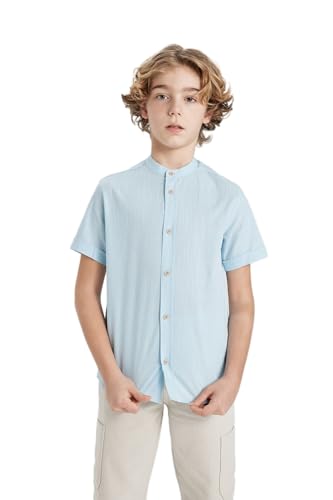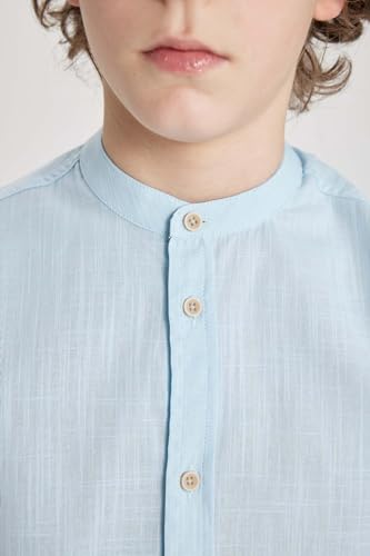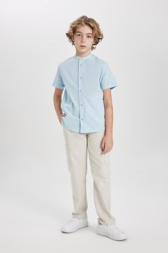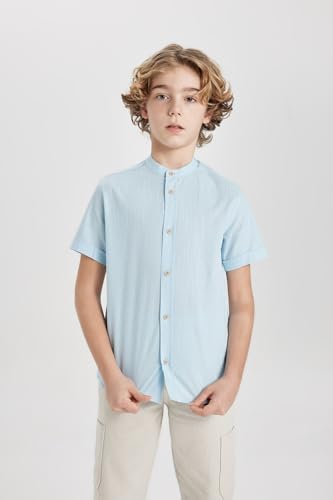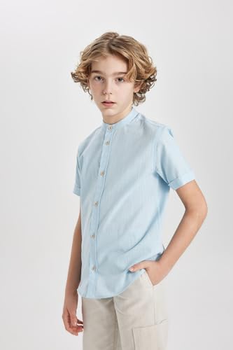 DeFacto - قميص قماش منسوج بقصة عادية وياقة مرتفعة وكم قصير للأولاد من ديفاكتو، Z5364A6