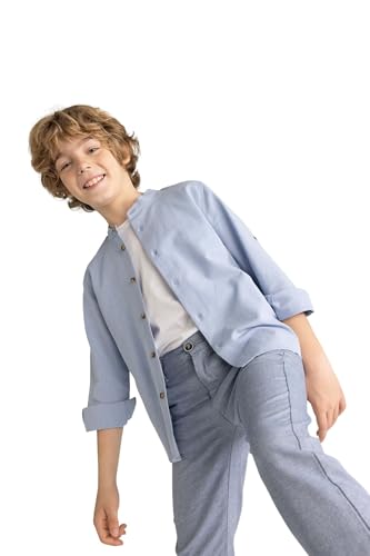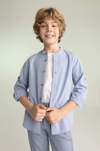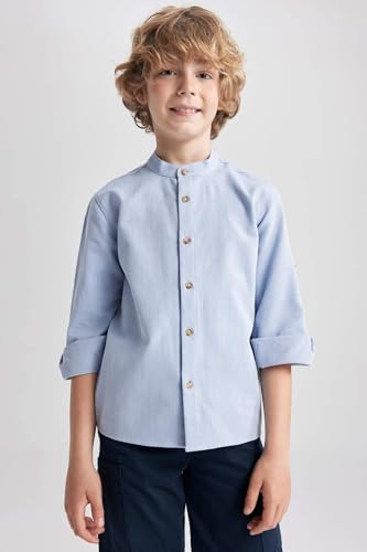 DeFacto - قميص بأكمام طويلة وياقة قائمة وقصة عادية للأولاد موديل Z2803A6 من ديفاكتو، قطن