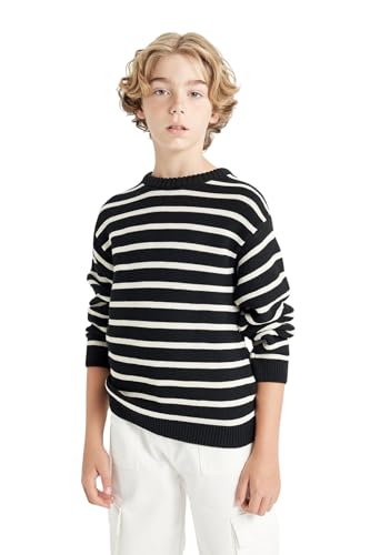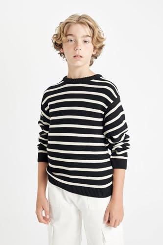 DeFacto - بلوفر تريكو بقصة عادية ورقبة دائرية ضيقة وأكمام طويلة للأولاد من ديفاكتو، موديل C2297A8