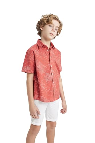 DeFacto - قميص منسوج بقصة كبيرة وقبة بولو وأكمام قصيرة للأولاد B6540A8 من ديفاكتو