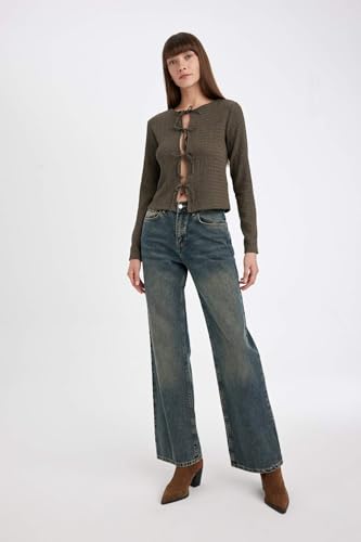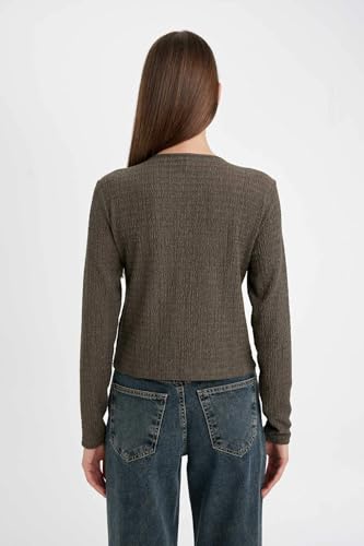 DeFacto - بلوزة منسوجة بقصة عادية ورقبة دائرية ضيقة وأكمام طويلة للنساء موديل D8524AX من ديفاكتو