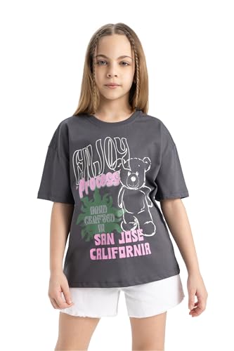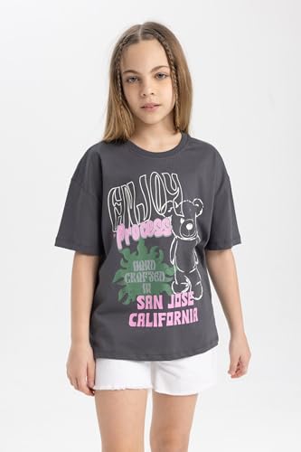 DeFacto - تيشرت بناتي من ديفاكتو، بأكمام قصيرة ورقبة دائرية وقصة مريحة، بلون أبيض لعمر 5/6 سنة، B5125A8، للفتاة