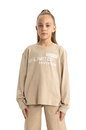 DeFacto - تيشرت منسوج بكم طويل وقصة كلاسيكية مريحة للبنات من ديفاكتو - A8074A8