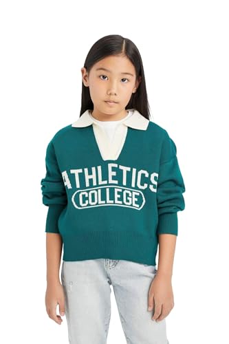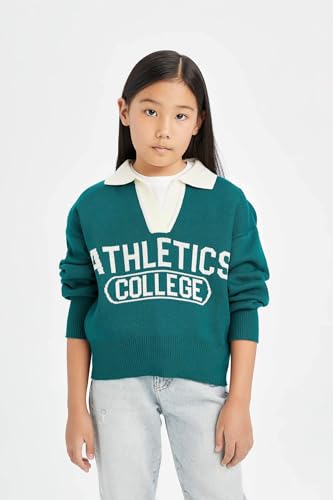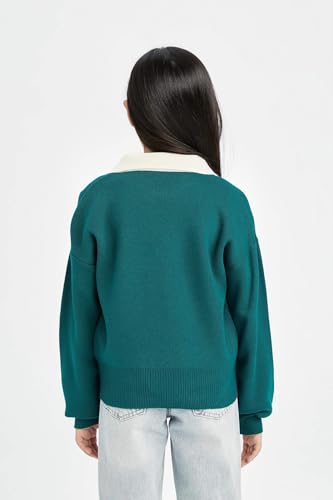 DeFacto - DeFacto Girl Regular Fit Polo Neck Long Sleeve Tricot Pullover D3190A8,Green 11/12 Y
