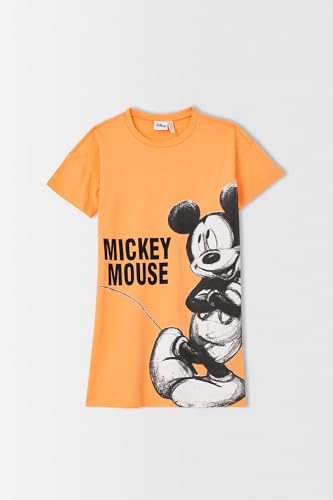DeFacto - ديفاكتو فستان للبنات بقصة عادية وتنورة محبوكة، لون خشب الساج، لعمر 9/10 سنوات