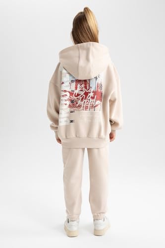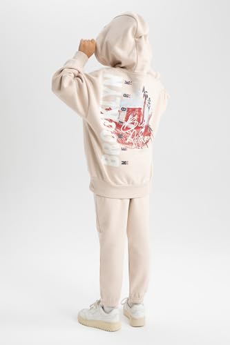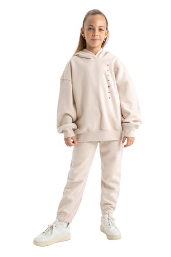 DeFacto - ديفاكتو طقم بنطلون رياضي للبنات - طقم محبوك بقصة عادية A9340A8، بيج فاتح، 5/6 سنوات