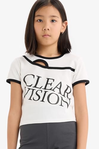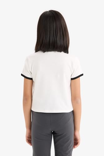 DeFacto - ديفاكتو تيشيرت كاجوال محبوك باكمام قصيرة ورقبة دائرية ضيقة وقصة ضيقة للبنات E1878A8، اكرو، 9/10 سنوات
