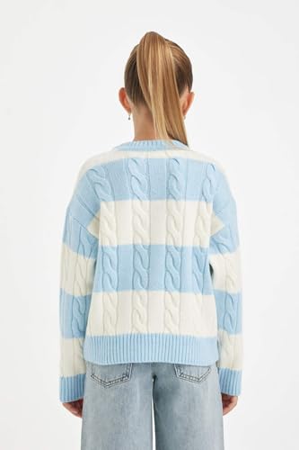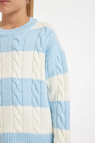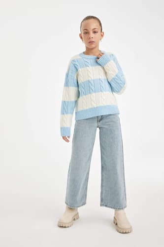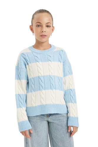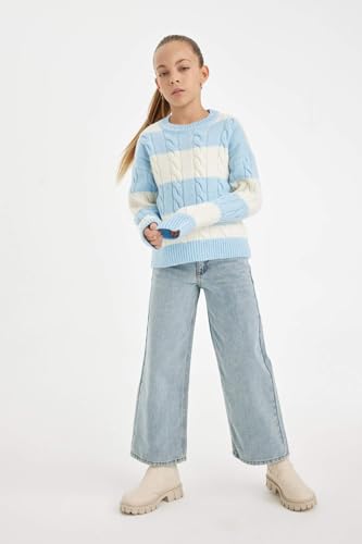 DeFacto - بلوفر تريكو بقصة عادية ورقبة دائرية ضيقة وأكمام طويلة للبنات B1925A8 من ديفاكتو