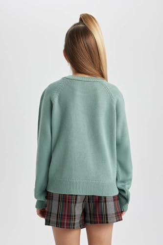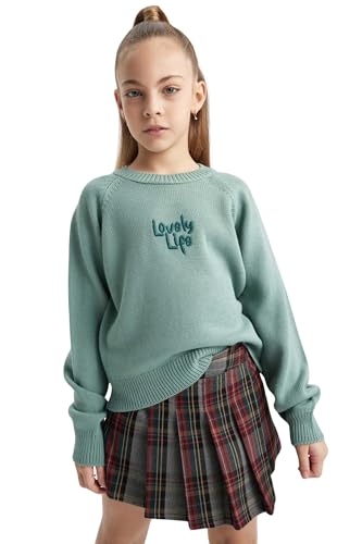 DeFacto - بلوفر تريكو بقصة عادية ورقبة دائرية ضيقة واكمام طويلة للبنات من ديفاكتو، موديل B5894A8