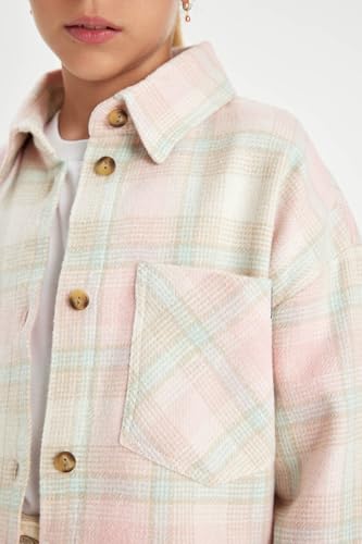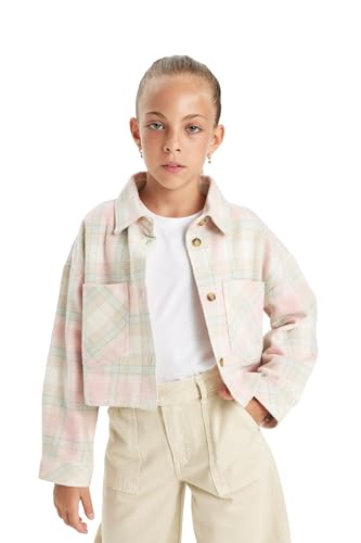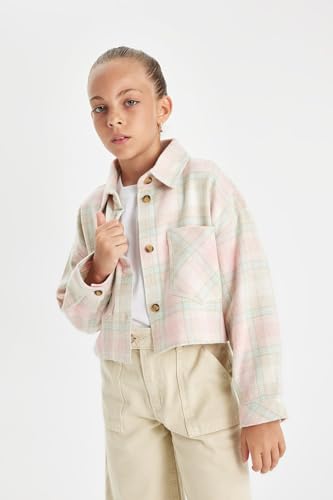 DeFacto - قميص منسوج بأكمام طويلة وقصة قصيرة للبنات D2659A8، لون وردي، لعمر 7/8 سنوات من ديفاكتو