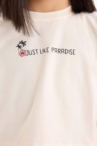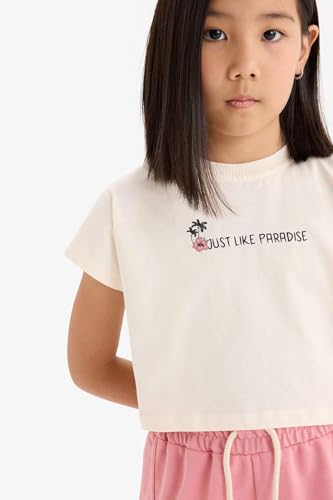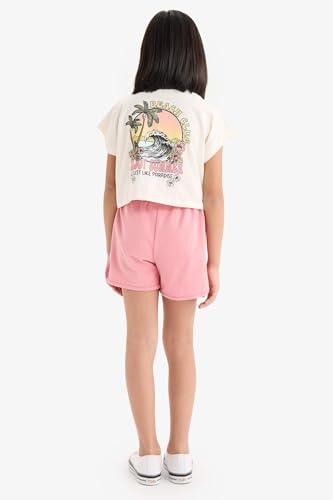 DeFacto - ديفاكتو طقم مكون من قطعتين للبنات مكون من تيشرت مطبوع باكمام قصيرة مع شورت باستك عند الخصر
