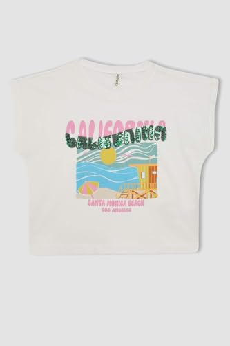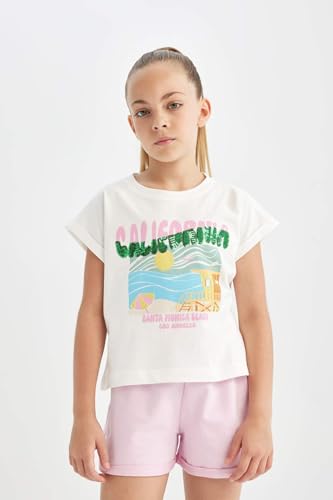 DeFacto - تيشرت منسوج بأكمام قصيرة وقصة مريحة مربعة ورقبة دائرية ضيقة للبنات من ديفاكتو، موديل C5280A8