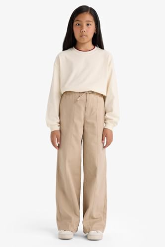 DeFacto - تيشرت كاجوال منسوج بأكمام طويلة ورقبة دائرية ضيقة وقصة مريحة طراز E8816A8 للبنات من ديفاكتو (عبوة من 1 قطعة)