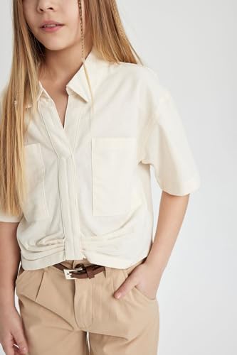 DeFacto - قميص للبنات قصير الأكمام بقصة متقاربة من ديفاكتو، موديل C0459A8