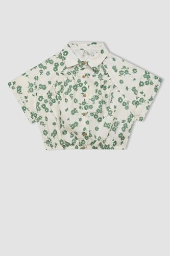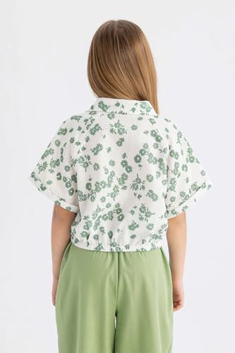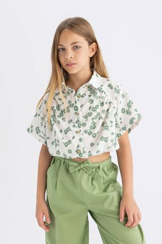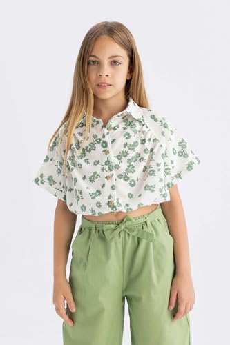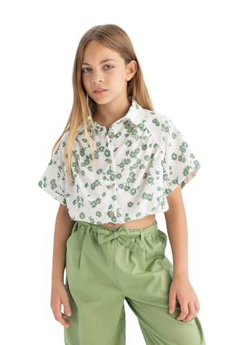 DeFacto - بلوزة قصيرة بكم قصير منسوج للبنات من ديفاكتو، موديل C4274A8