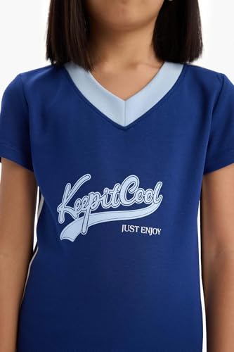 DeFacto - ديفاكتو فستان كاجوال باكمام قصيرة وتنورة محبوكة للبنات E2276A8