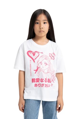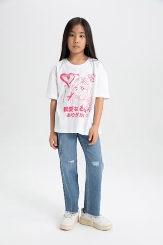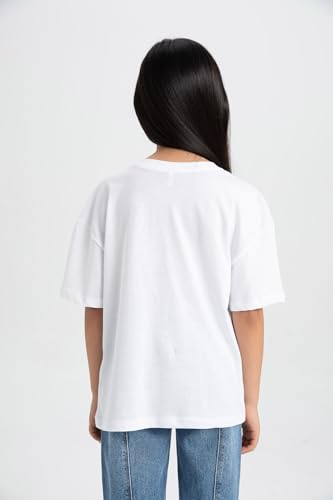 DeFacto - تيشرت منسوج للبنات من ديفاكتو بأكمام قصيرة وقصة مريحة، موديل C4503A8