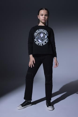 DeFacto - تيشرت بأكمام طويلة ورقبة دائرية ضيقة للبنات بمقاس كبير من ديفاكتو - B3545A8