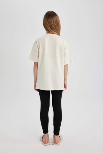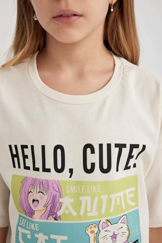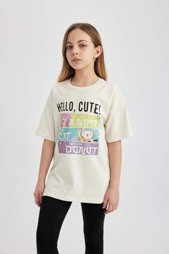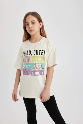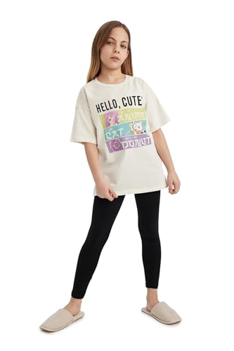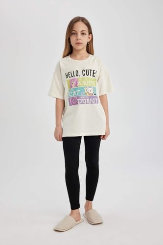 DeFacto - طقم بيجامة للبنات بقصة فضفاضة وأكمام قصيرة من ديفاكتو C1952A8 من قطعتين