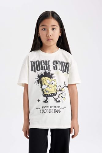DeFacto - تيشرت منسوج بأكمام قصيرة وقصة واسعة للبنات من ديفاكتو، C1463A8
