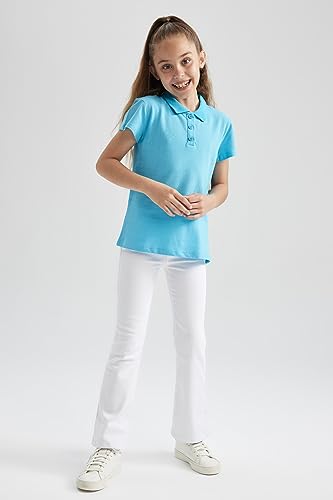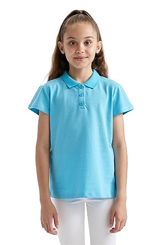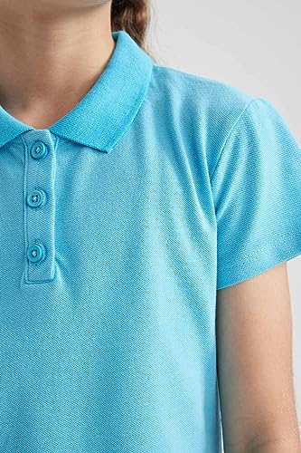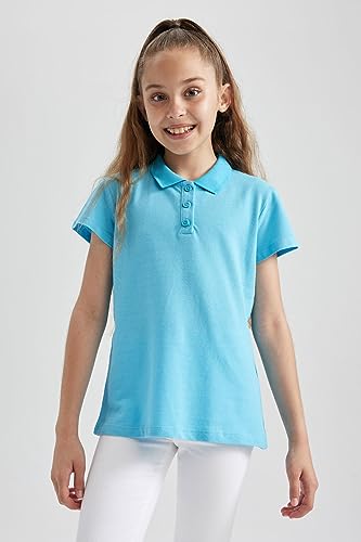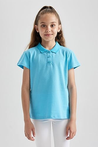 DeFacto - قميص بولو أساسي سادة بقصة عادية وياقة وأكمام قصيرة للبنات من ديفاكتو