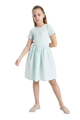 DeFacto - فستان منسوج بقصة عادية بأكمام قصيرة وجيبة للبنات من ديفاكتو، موديل C2179A8