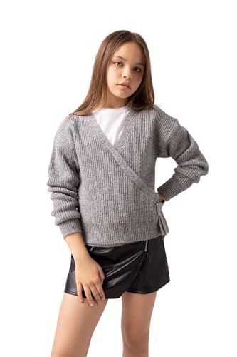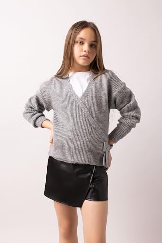 DeFacto - ديفاكتو بلوفر تريكو بقصة عادية وقبة V واكمام طويلة للبنات A6013A8