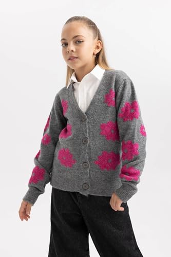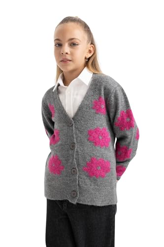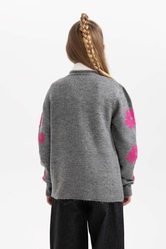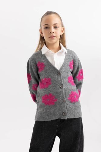 DeFacto - ديفاكتو سويت شيرت تريكو بقصة عادية ورقبة شكل V واكمام طويلة للبنات، موديل X9530A6