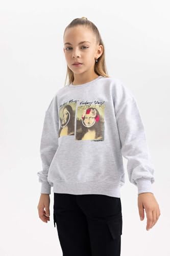 DeFacto - تيشرت عصري منسوج بقصة مريحة ورقبة دائرية ضيقة وأكمام طويلة للبنات A7740A8 من ديفاكتو