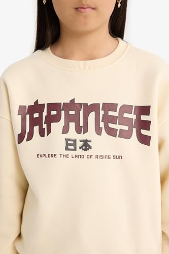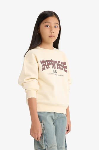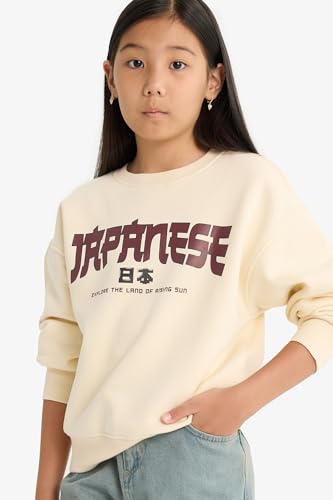 DeFacto - سويت شيرت منسوج E6779A8 للبنات بأكمام طويلة ورقبة دائرية ضيقة وقصة مريحة من ديفاكتو، (عبوة 1 قطعة)